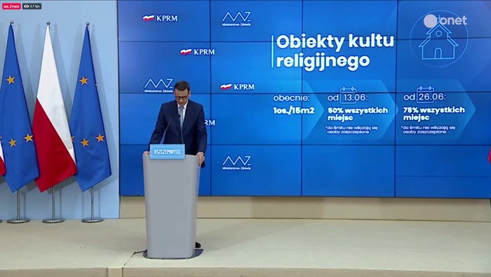 Premier przekazał, że rządzący chcą, aby w świątyniach była wypełniona połowa miejsc. Konferencja premiera i ministra zdrowia. Na konferencji prasowej minister zdrowia, adam niedzielski zapowiedział, jakie będą zmiany w obostrzeniach w czerwcu. Od kilku dni pojawiają się pogłoski o otwarciu hoteli i teatrów. Szczegóły luzowania obostrzeń przedstawił minister zdrowia adam niedzielski.